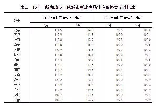 国家统计局刚刚发布的6月70大中城市房价数据显示,重点监测的15个一线和热点二线城市新建商品住宅价格同比涨幅全部回落,回落幅度在0.8至5.5个百分点之间。
